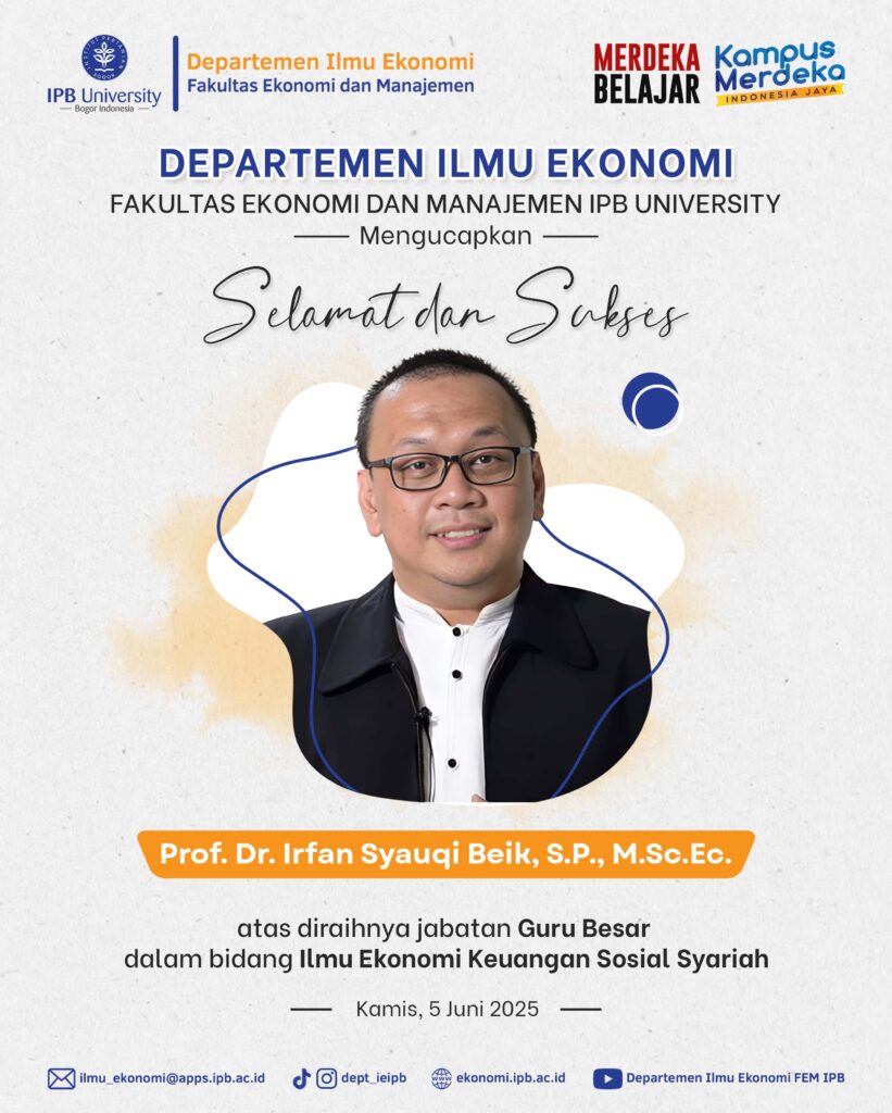 Departemen Ilmu Ekonomi mengucapkan selamat dan sukses kepada Prof. Dr. Irfan Syauqi Beik, S.P., M.Sc.Ec.