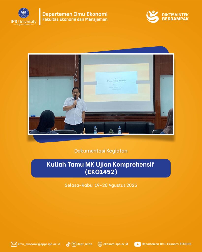 Dalam Kuliah Tamu Pembekalan Studi Independen (19–20 Agustus 2025), Bapak Vid Adrison, Ph.D. (Dosen Departemen Ilmu Ekonomi FEB UI) berbagi ilmu dan wawasan di Departemen Ilmu Ekonomi FEM IPB.