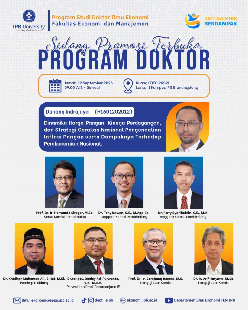 Bersama ini kami mengundang Bapak/Ibu untuk menghadiri Sidang Promosi Terbuka Program Doktor Ilmu Ekonomi :